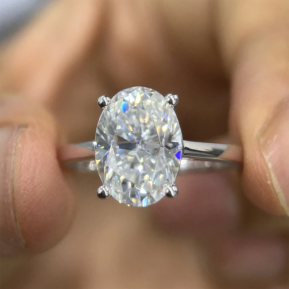 2 Carat Moissanite Rings for Women Oval Cut D Color VVS1 Lab Diamond S925 Sterling Silver Wedding Promise Band With Certificate